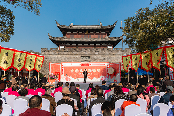 “春生夏長,秋收冬藏,小雪,冬日暖陽,金華火腿腌制開場(chǎng)……”11月27日,一字一句、鏗鏘有力的祭文在金華古子城保寧門前回蕩。
